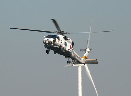 4年に1度の2008年国際航空宇宙展一般公開日(パブリックデイ)に行ってきました。4年前は台風直撃だったので中止されたヘリ主体の飛行展示も今年は無事に見ることができました。海上でのホバリング時にはダウンウォッシュで飛沫が我々にも容赦なくかかり迫力がありました。横浜港を背景に10機前後でしょうか、迫力のある飛行を見ることができて満足でした。
